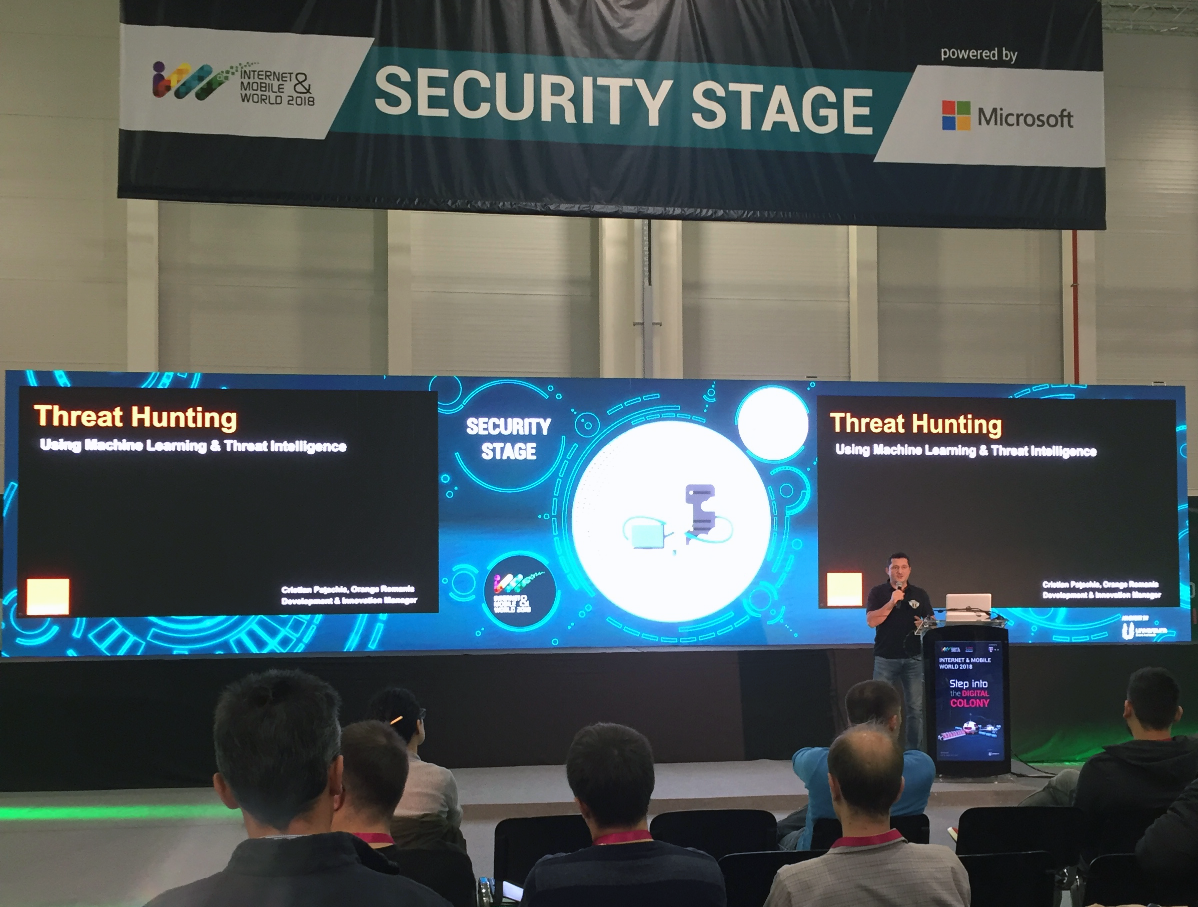Andrei și-a prezentat soluția în cadrul prezentării Using Big Data Analytics to Enhance Cyber Security Resilience, susținută de către Cristi Pațachia, Development & Innovation Manager la Orange România.