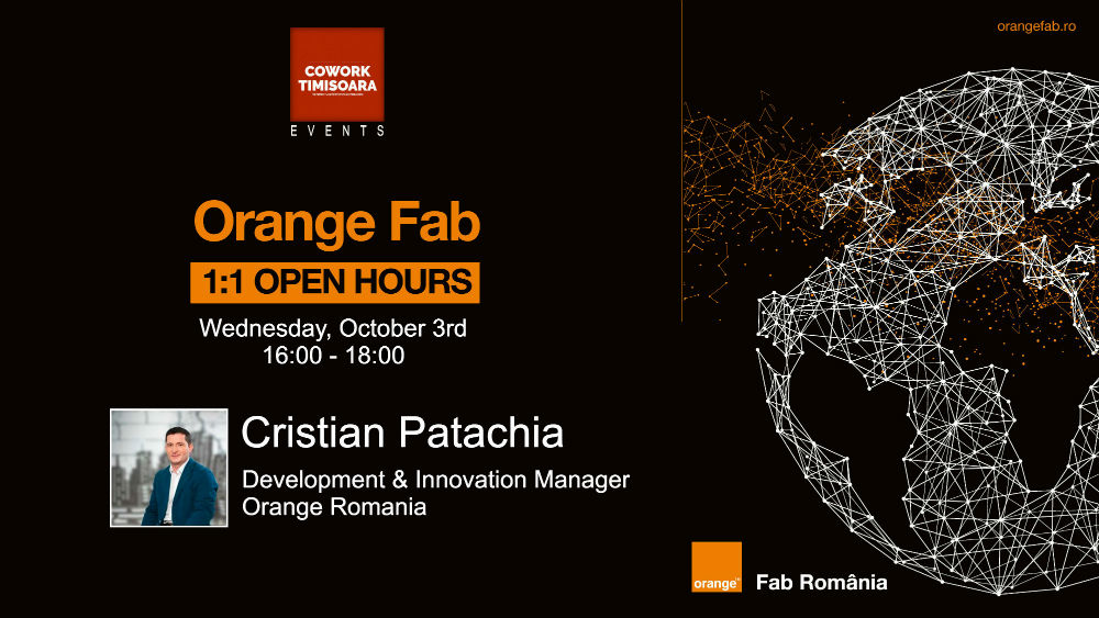 Wednesday, October 3rd, Cristi Patachia, Development & Innovation Manager at Orange, will meet the entrepreneurs community in Timisoara. Between 16:00-18:00 he will be available for 1:1 sessions at Cowork Timisoara.